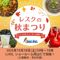 皆様への日頃の感謝を込めて、 来る10/18(土)に LIXILショールーム岡山にて 「🍁レスクの秋まつり🍁 」を開催いたします。 リフォームのご相談はもちろん、ご家族、ご友人皆様で楽しめる企画を多数ご用意 […]